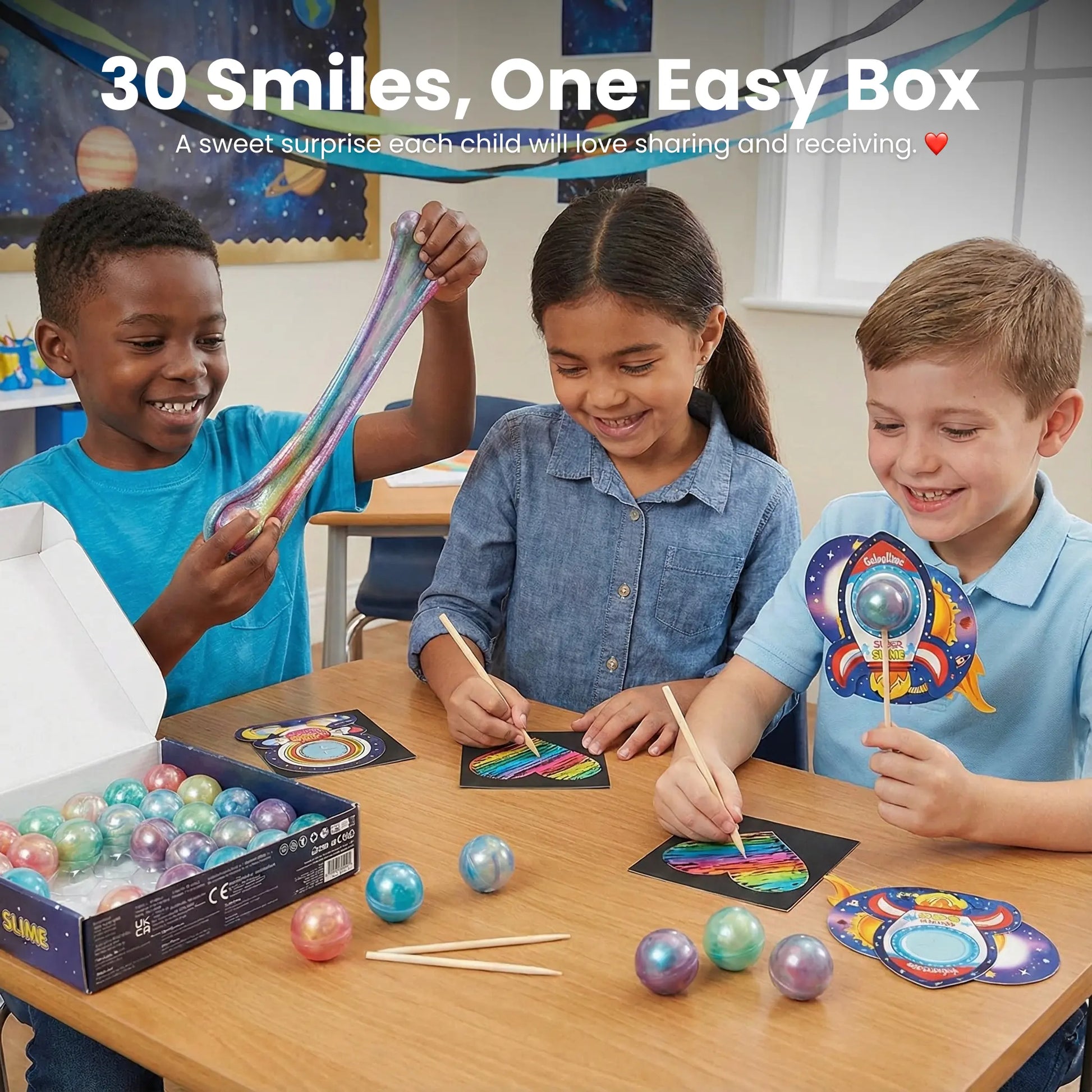 Said their kids loved our Galaxy Slime Pack more than traditional paper valentines.
